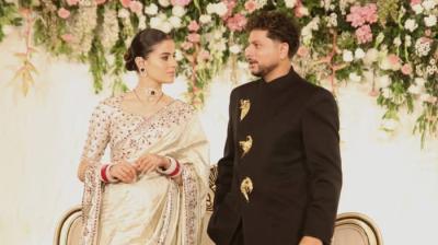 शाही अंदाज में कुलदीप-वंशिका का रिसेप्शन, विंटेज कार से ग्रैंड एंट्री