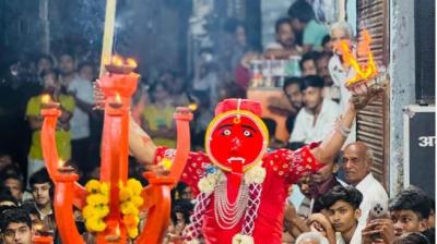 खरगोन की 407 साल पुरानी परंपरा में मां महाकाली ने किया भव्य प्रवेश, सिंह पर सवार और तलवार थामे श्रद्धालुओं को मंत्रमुग्ध किया