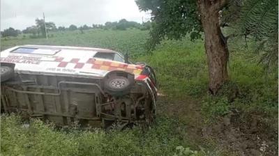 गर्भवती को लेकर अस्पताल जा रही एंबुलेंस रास्ते में पलटी, हादसे के बीच महिला ने उसी वाहन में बेटे को जन्म दिया