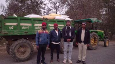 बदबूदार वेस्ट मटेरियल से ग्रामीण परेशान, ट्रकों को रोककर पुलिस के हवाले किया