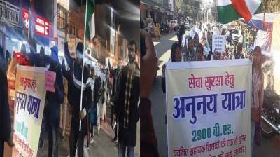 शिक्षकों का मार्च पहुंचा कटघोरा, सरकार से की नौकरी बचाने की अपील