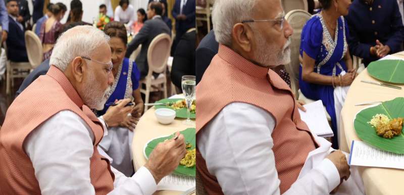 त्रिनिदाद दौरे में पीएम मोदी को मिला खास आतिथ्य, पत्तल पर परोसा गया खाना