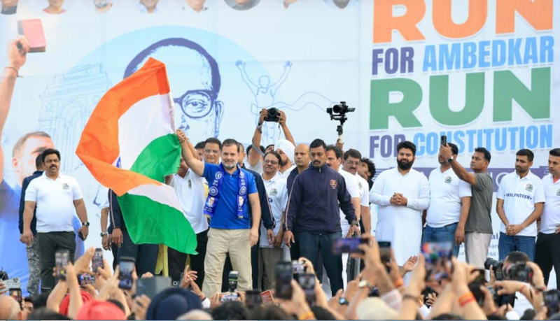 राहुल ने किया रन फॉर अंबेडकर के जरिए संविधान बचाने का आह्वान, संघ पर कसा तंज