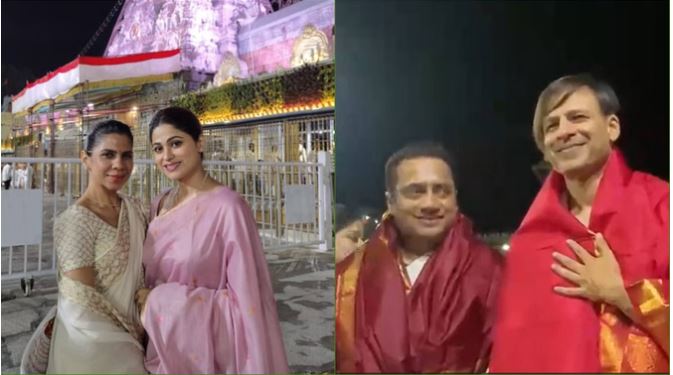 तिरुपति की शरण में सितारे: विवेक ओबेरॉय और शमिता शेट्टी ने श्री वेंकटेश्वर स्वामी मंदिर में टेका मत्था