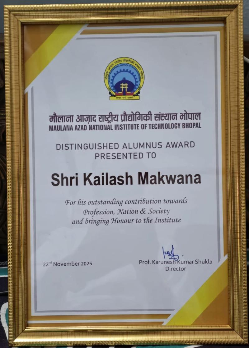 भोपाल। आज पुलिस महानिदेशक कैलाश मकवाना को पेशे, राष्ट्र और समाज के प्रति उनके उत्कृष्ट योगदान और MANIT संस्थान को गौरवान्वित करने के लिए विशिष्ट पूर्व छात्र पुरस्कार से सम्मानित किया गया। उन्होंने MANIT भोपाल के 22वें दीक्षांत समारोह में मुख्य अतिथि के रूप में भाग लिया। मकवाना ने उपस्थित गणमान्य लोगों को संबोधित किया, पीएचडी, एमटेक, बीटेक की उपाधियाँ प्राप्त करने वाले छात्रों और पदक विजेताओं को बधाई दी और उन्हें जीवन में आगे बढ़ने के लिए प्रेरित किया। उन्होंने इस बात पर ज़ोर दिया कि नैतिक मूल्य, आचार-विचार और आचरण किसी भी संगठन में करियर बनाने की नींव होते हैं।