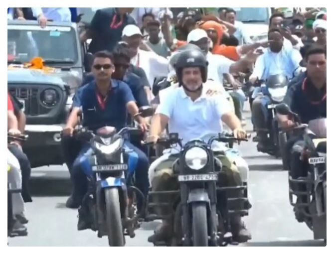 दरभंगा। बिहार में कांग्रेस की ‘वोटर अधिकार यात्रा’ अपने 11वें दिन बुधवार को दरभंगा पहुंची है. इस यात्रा में नेता प्रतिपक्ष राहुल गांधी भी शामिल हुए। राहुल के साथ उनकी सांसद बहन प्रियंका गांधी भी मौजूद थीं। इस यात्रा में राहुल गांधी बुलेट पर निकले थे और पीछे उनकी बहन प्रियंका गांधी बैठी नजर आईं। इस यात्रा में राजद नेता तेजस्वी यादव सहित महागठबंधन के अन्य नेता और कार्यकर्ता भी बाइक चलाते नजर आए।