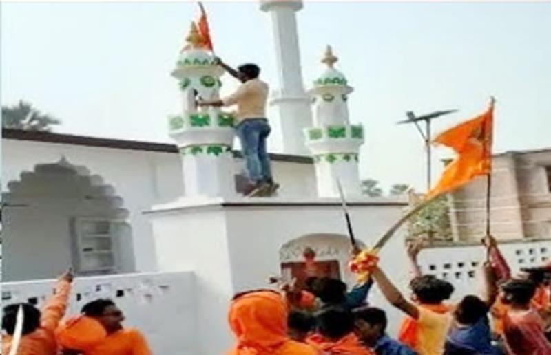 तुगलकाबाद में शोभायात्रा के दौरान मस्जिद पर भगवा झंडा, पुलिस जांच में जुटी